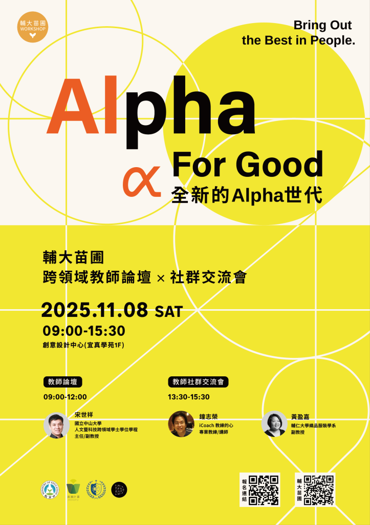 【跨領域】「Alpha For Good:全新的Alpha世代」跨領域教師論壇&社群交流會Post author:tngsteach3Post published:2025-10-18Post category:03.教師活動 / 教學組 / 教師研習※詳細內容如附件所示,請參照。Alpha-For-Good:全新的Alpha世代下載 Post Views: 37Read more articles上一篇文章✨115級(H79)畢業紀念冊封面、封底徵稿-投票結果公告下一篇文章【跨領域】「PBL 問題導向學習:教室與野外的實踐」系列活動