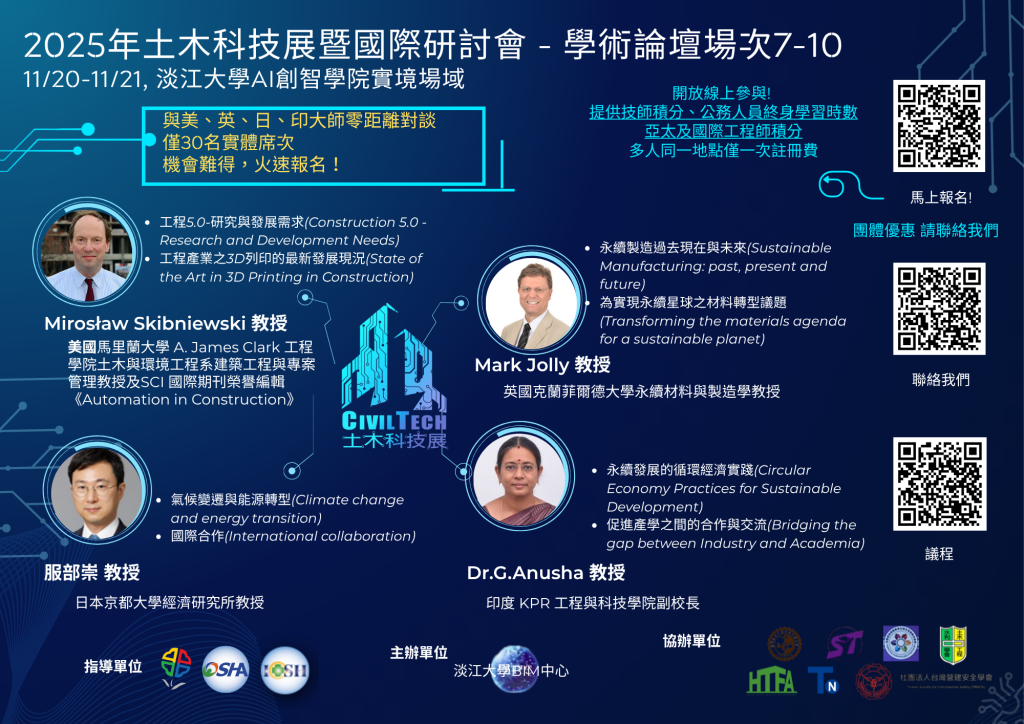 【跨領域】淡江大學工程資訊模擬與管理研究中心(BIM中心):淡水校園AI 創智學院實境場域舉辦「學術論壇」Post author:tngsteach3Post published:2025-11-07Post category:03.教師活動 / 教學組 / 教師研習※詳細內容如附件所示,請參照。學術論壇01下載學術論壇02下載學術論壇03下載 Post Views: 31Read more articles上一篇文章【跨領域】國立臺南生活美學館:「文化體驗教育計畫(南區)」成果展下一篇文章【轉知】國立臺灣海洋大學於115年1月26日及1月27日辦理「2026年海洋科學營」