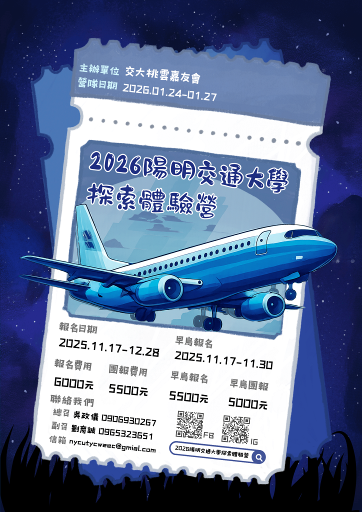FB:https://www.facebook.com/chiaodai.exploreandexperienceIG:https://www.instagram.com/nycu.tyc_weec/profilecard/?igsh=cHZsdm15Z3M4eG5o