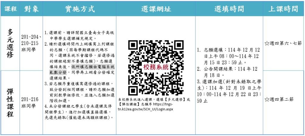 【高二同學】114學年度第二學期多元選修(含加深加廣)及彈性課程第一階段選課時間