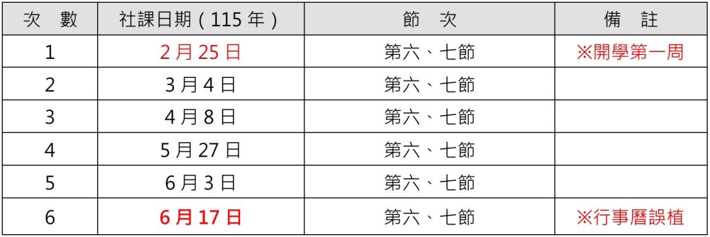 註:第六次社團活動日期更正為【6 月 17 日】。