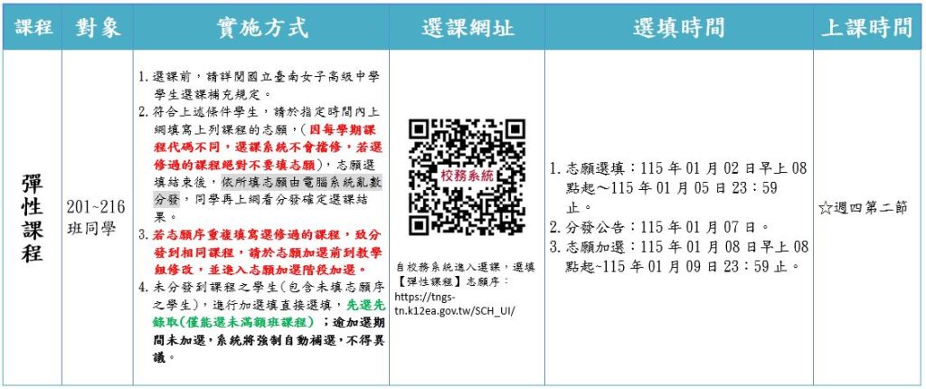 【高二】114學年度第二學期彈性課程(第二階段)選課時間