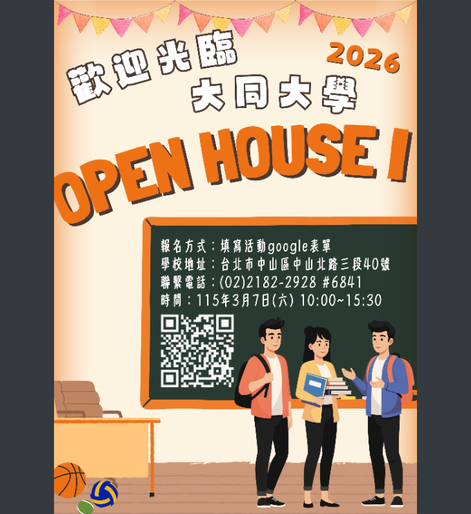 【轉知】大同大學辦理「歡迎光臨大同大學OPEN HOUSE I」校系參觀活動