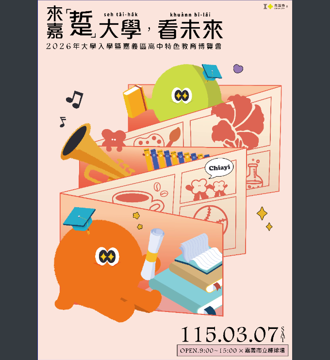 【轉知】嘉義市政府「2026年大學入學暨嘉義區高中特色教育博覽會」之宣傳海報1份