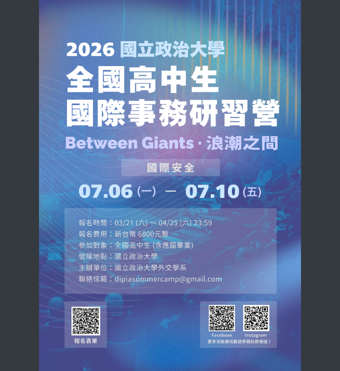 【轉知】國立政治大學外交學系「2026全國高中生國際事務研習營」活動