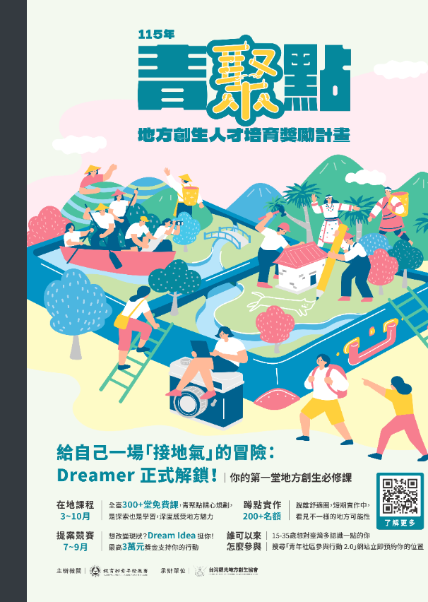 115年青聚點Dreamer培訓暨蹲點實作招募簡章Post author:tngsdisciPost published:2026-03-30Post category:03.學務處 / 訓育組有興趣者請參閱簡章。115年青聚點Dreamer培訓暨蹲點實作招募簡章-來文下載115年青聚點Dreamer培訓暨蹲點實作招募簡章下載 Post Views: 41Read more articles上一篇文章高中職專、大、碩【誌善】清寒學生進步獎學金~115.05.11下一篇文章轉知行政院人權及轉型正義處相關資訊