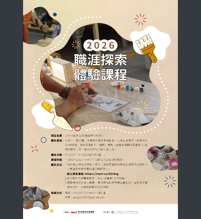 【轉知】教育部函轉文化部文化資產局(下稱該局)辦理文資傳匠工坊「2026職涯探索體驗課程」
