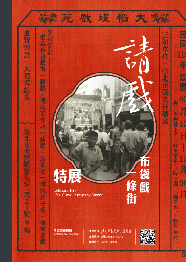【轉知】臺北市藝文推廣處大稻埕戲苑舉辦《請戲─布袋戲一條街》特展Post author:tngsdisciPost published:2026-04-13Post category:03.學務處 / 訓育組轉知臺北市藝文推廣處大稻埕戲苑舉辦《請戲─布袋戲一條街》特展-來文下載 Post Views: 73Read more articles上一篇文章【學生活動】國家海洋研究院辦理「2026第四屆諾大師海洋大數據競賽」下一篇文章【學生事務】114學年度第2學期高三「自主精進學習」實施要點