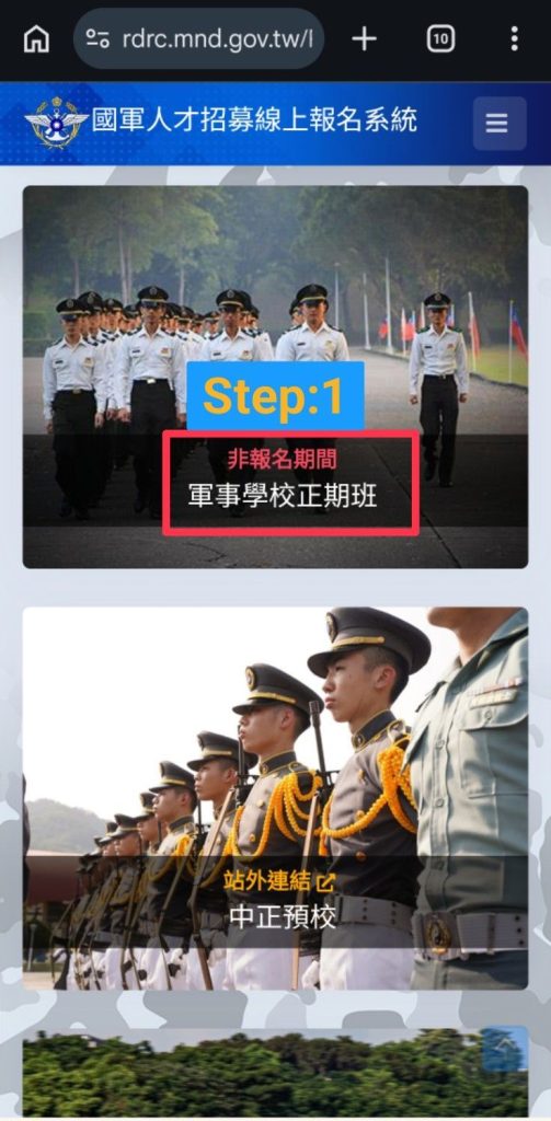 【軍校報名】軍校第二階段甄試准考證及注意事項已公布!Post author:tngsna470017Post published:2026-04-15Post category:_置頂公告 / 04.校安中心正期班准考證已完成製作,可提醒報考同學以帳號密碼登入軍校報名查詢。另以下各校連結為115年正期班各軍事院校面、口試規劃,請參閱:陸軍官校海軍官校空軍官校理工學院管理學院政戰學院 口試注意事項 面試注意事項國醫大學 口試注意事項 面試注意事項 Post Views: 75Read more articles上一篇文章【轉知】社團法人中華民國應用商業管理協會心理探索營-2026夏令營報名開始!!下一篇文章轉~國立自然科學博物館「科博時光:重拾夏日浪漫」單身聯誼活動